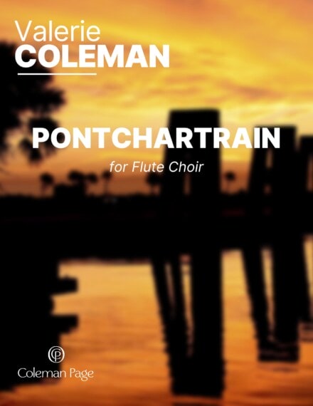 Pontchartrain for flute choir (optional drums and any bass instrument in C) is a narrative that depicts the rebuilding of New Orleans. This melodic work begins with a slow section describing the devastation of hurricane Katrina, followed by a traditional New Orleans ‘Second Line’ romp where the choir is transformed into a street brass band.